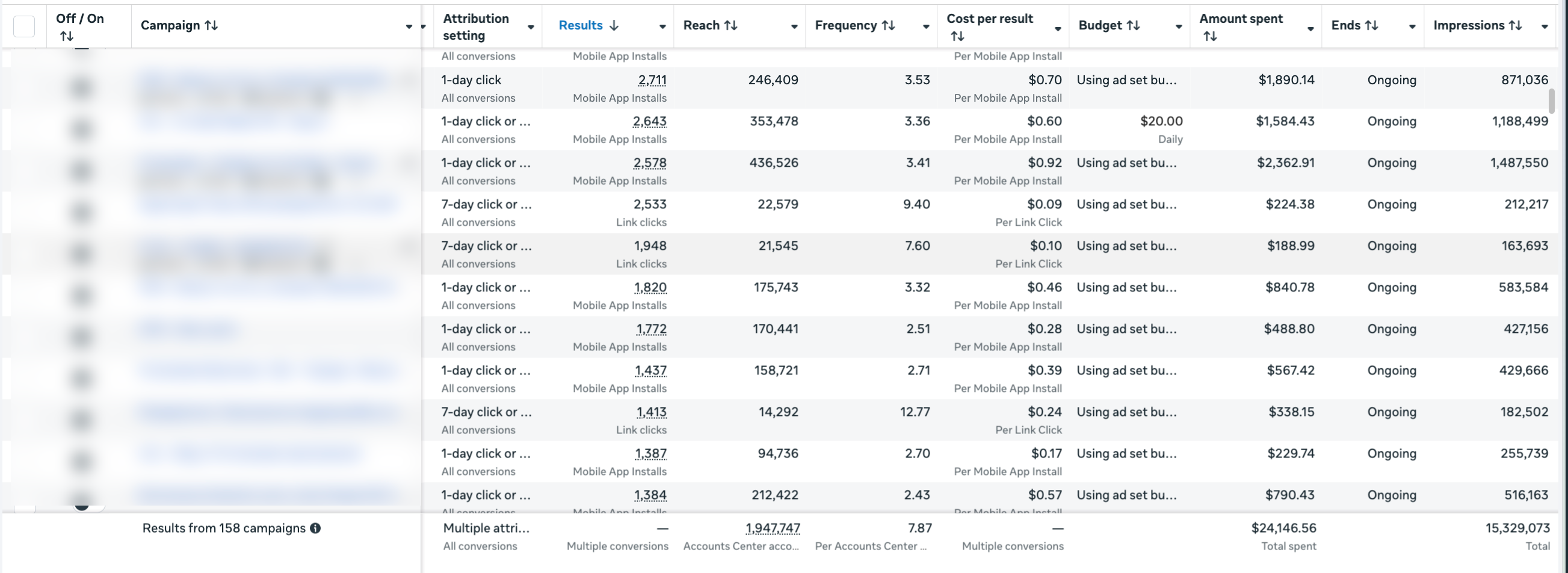 Efficiency: $0.30 CPI (Average Cost Per Install).